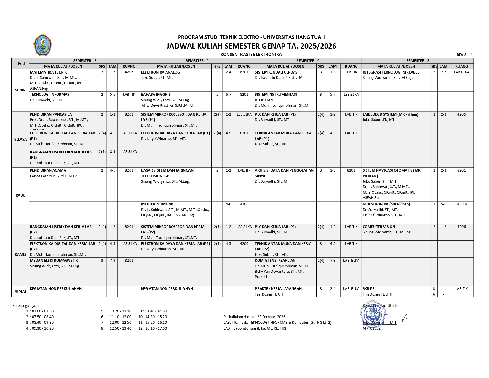 Jadwal Kuliah Konsentrasi ELEKTRONIKA
