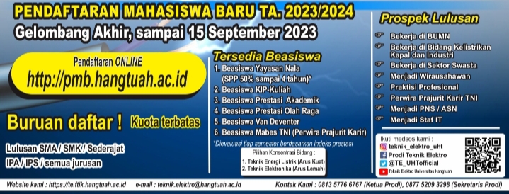 PANGGILAN PENTING disampaikan kepada para Mahasiswa Prodi Teknik Elektro yang sedang mengerjakan SKRIPSI untuk hadir pada acara pengarahan pengerjaan skripsi pada:Hari, Tgl : Jumat, 6 Oktober 2023Waktu : 09.00 – 11.00 WIBTempat : Ruang kelas 8201 mengingat pentingnya acara ini, Selengkapnya …