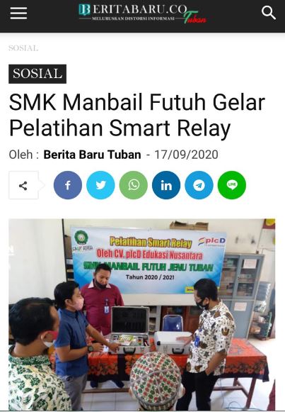 Sebagai bentuk kejasama dalam mencerdaskan anak bangsa Prodi Teknik Elektro bekerjasama dengan PLCd Edukasi Nusantara mengadakan pelatihan smart relay di SMK Manbail Futuh Tuban. Kegiatan ini diikuti oleh para guru SMK Mabail yang tentunya melalui protokol kesehatan yang sangat ketat. Meskipun dalam kondisi pandemi tidak memutuskan semangat para guru untuk menimba ilmu.
