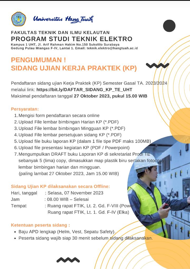 Sidang Ujian KP Pengumuman sidang ujian Praktek Kerja Lapangan / Kerja Praktek (KP) Semester Gasal TA. 2023/2024. Jangan sampai terlewat ya… Daftar Sidang Ujian KP Post Views: 930